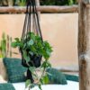 Elegante, handgemaakte macramé plantenhanger van katoen — de perfecte, stijlvolle thuisbasis voor uw kamerplanten. Geef uw interieur of overdekte buitenruimte karakter met levensechte of kunstmatige groene accenten.