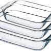 Pyrex 3-delige borosilicaat-ovenschalen: duurzame, geur- en smaakneutrale schalen (-40°C tot 300°C) met ruime handgrepen. Stapelbaar, geschikt voor oven (tot 200°C), magnetron, koelkast, vriezer (tot -20°C) en vaatwasser. Perfect voor geroosterd, gratins en desserts — professionele kwaliteit voor thuiskoks.